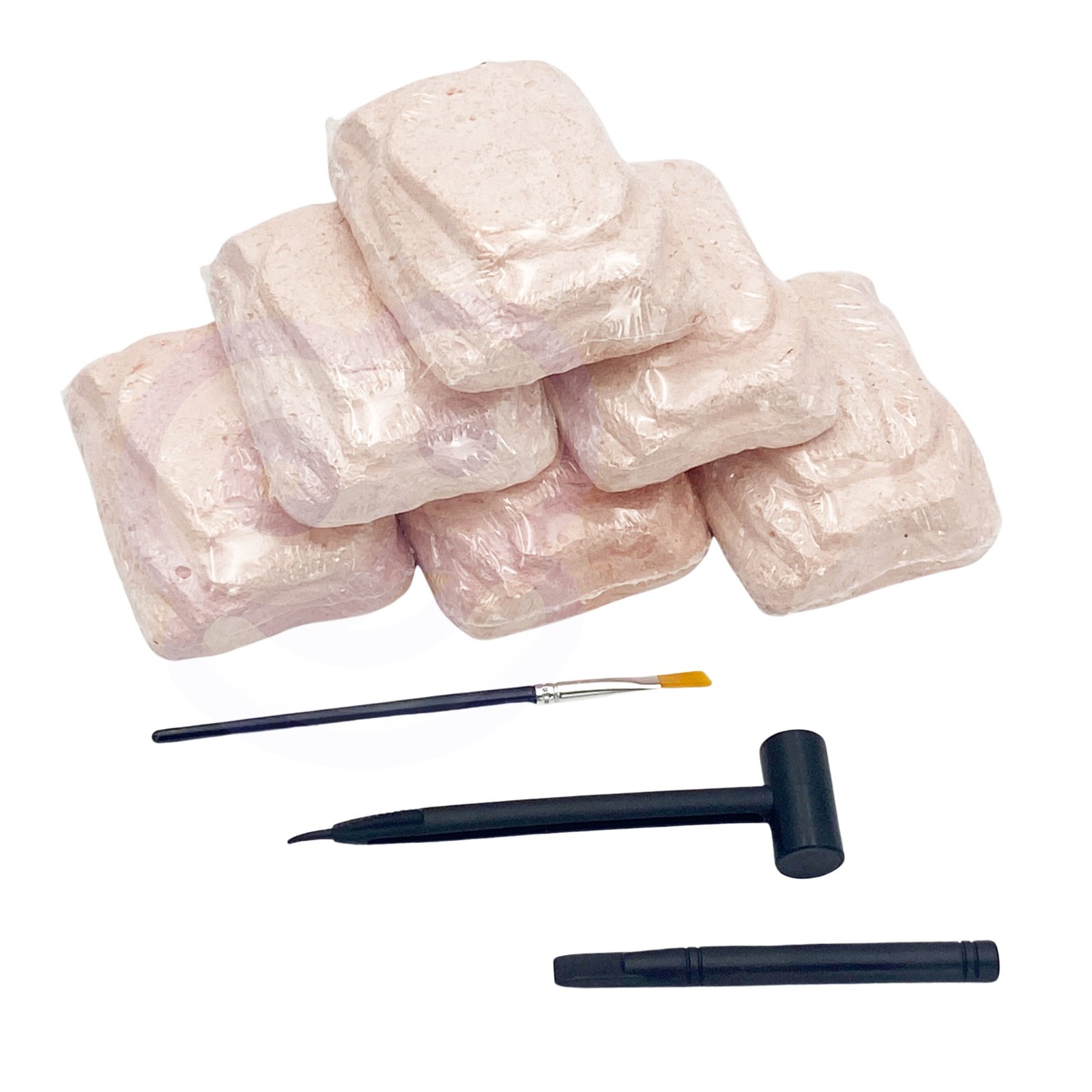 – 6 gipso blokeliai su paslėptais mini skeletais