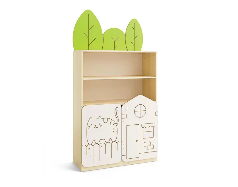 Lentynos korpusas pagamintas iš 18 mm storio beržo medienos drožlių plokštės ir pastatytas ant cokolio. Lentynos pagamintos iš tos pačios plokštės. Durelės su frezuotu paviršiumi pagamintos iš baltos spalvos MDF (12 mm) ir turi aliuminio rankenėles. Šviesiai žalios spalvos MDF aplikacija (12 mm) taip pat yra su frezuotu paviršiumi.