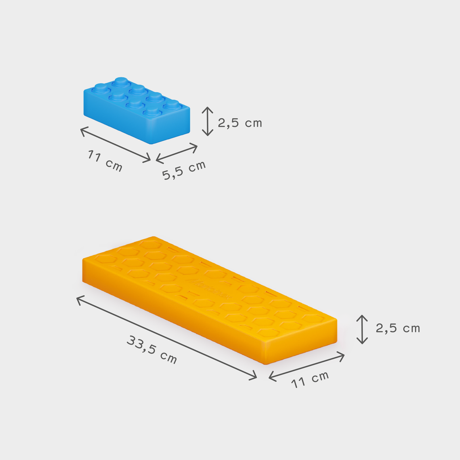 Rinkinį sudaro 28 kaladėlių: 12 didelių platformų ir 16 blokų.