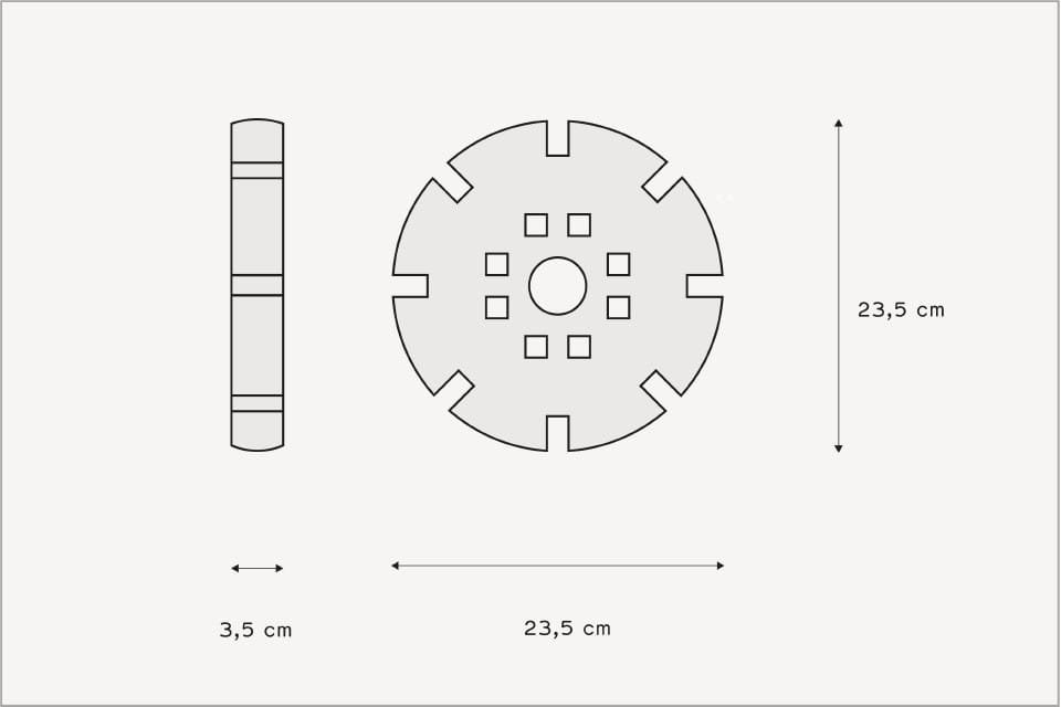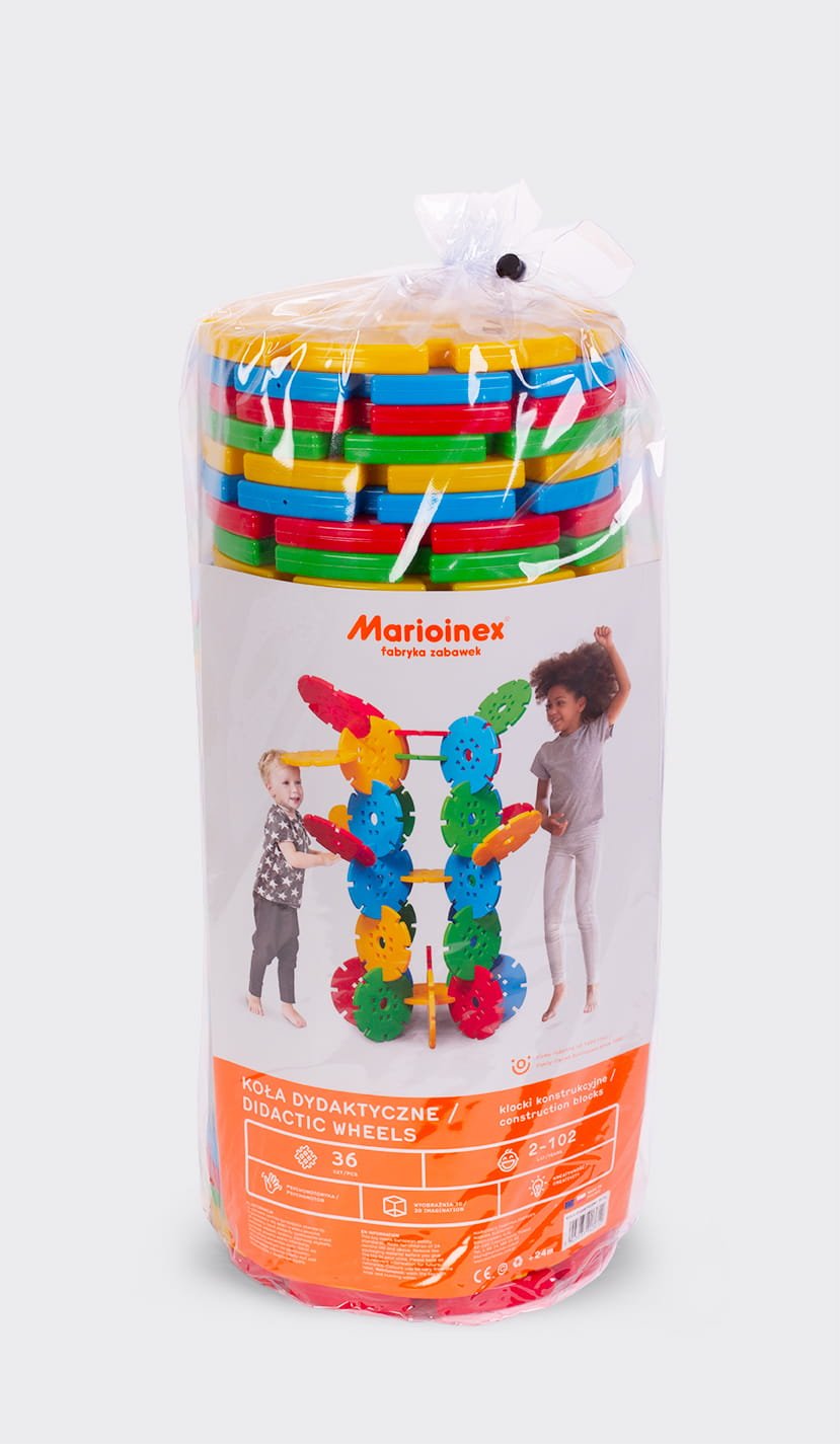 Rinkinį sudaro 36 kaladėlės, kurių kiekvienos skersmuo yra 24 cm.