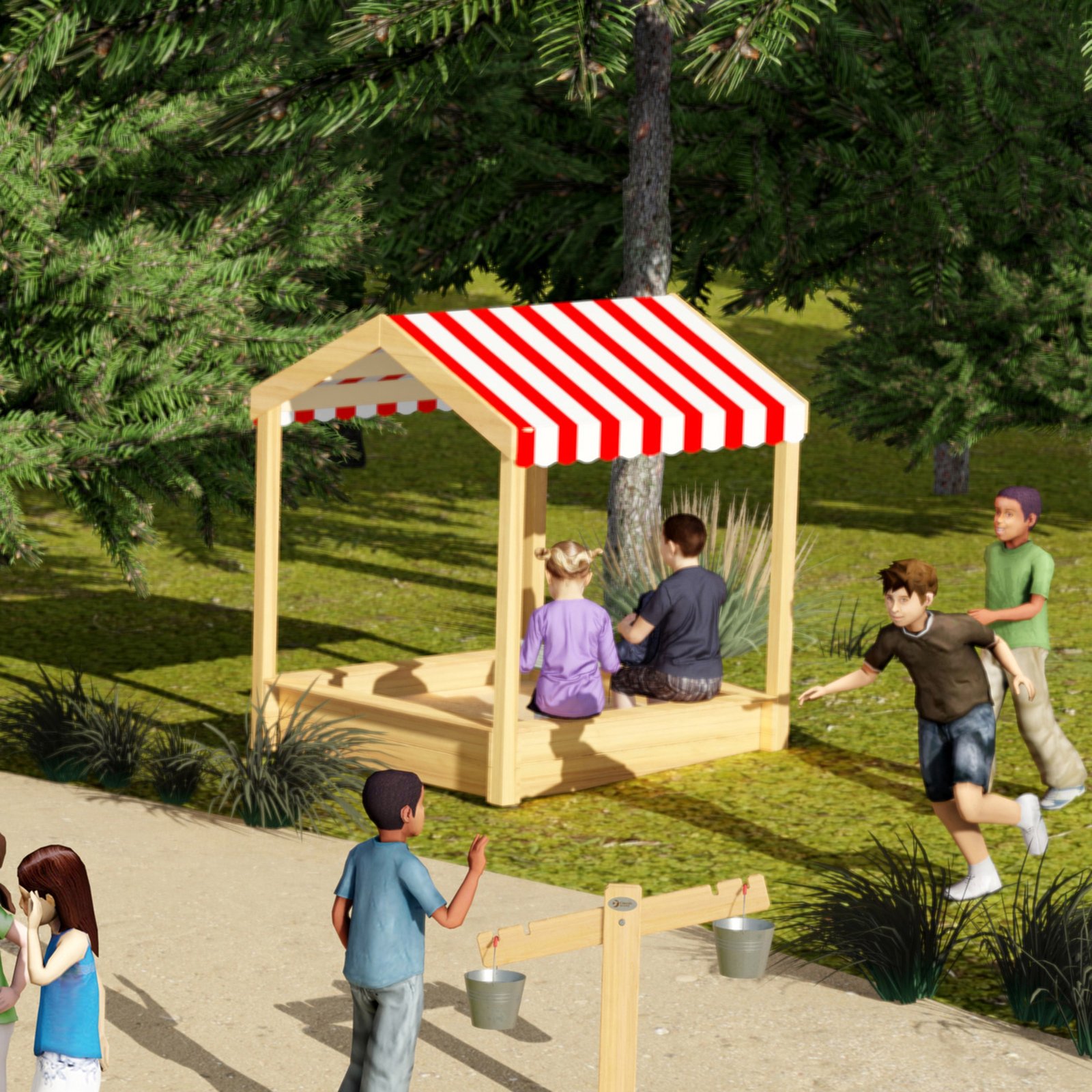 produkto kiekis: Medinė lauko smėliadėžė su stogeliu ED70008