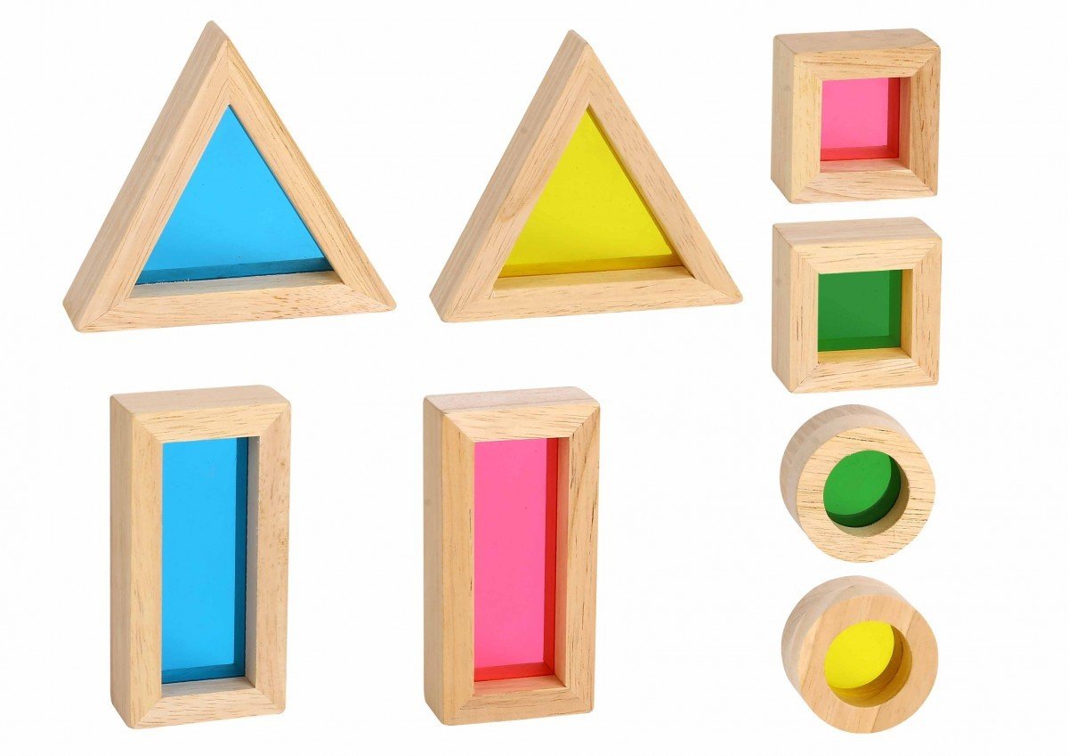 8 plytelės – 4 skirtingos formos – stačiakampio, kvadrato, apvalios ir trikampio