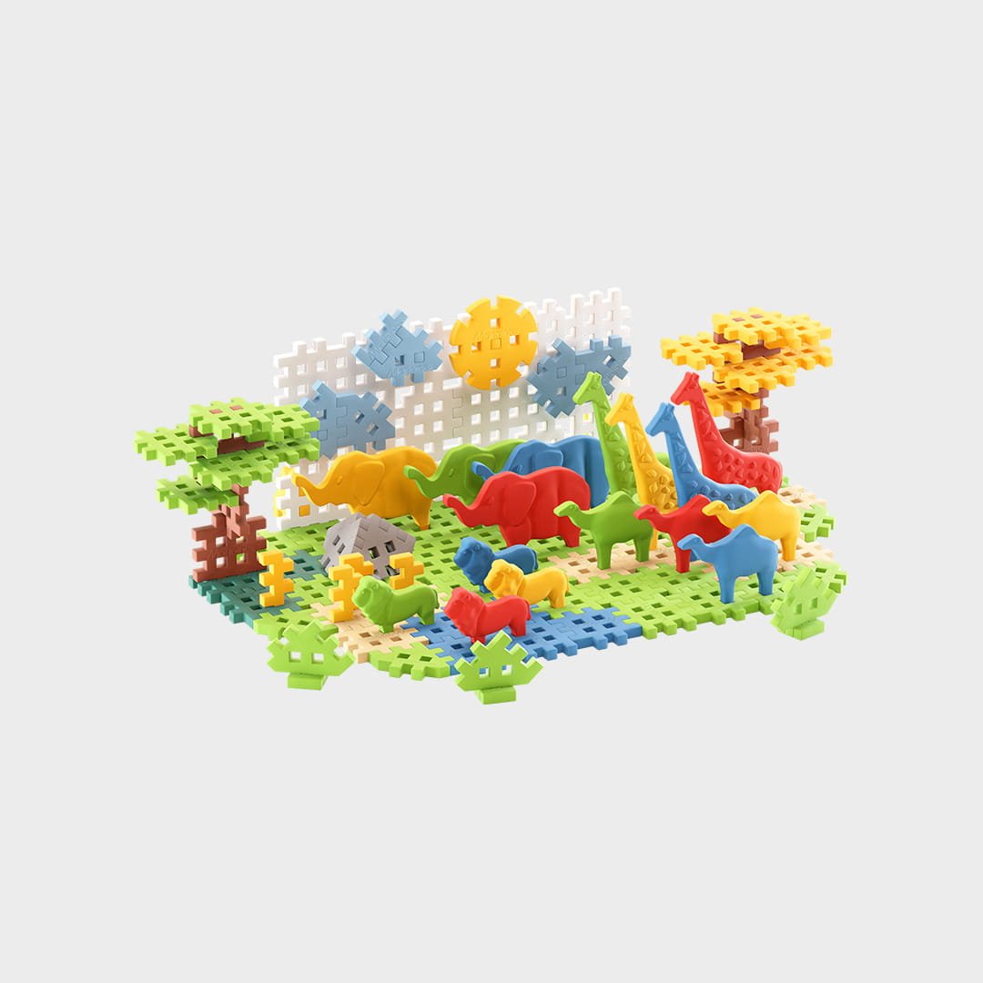 Rinkinį sudaro 84 spalvingi MINI VAFLIAI ir 16 gyvūnų figūrėlių.