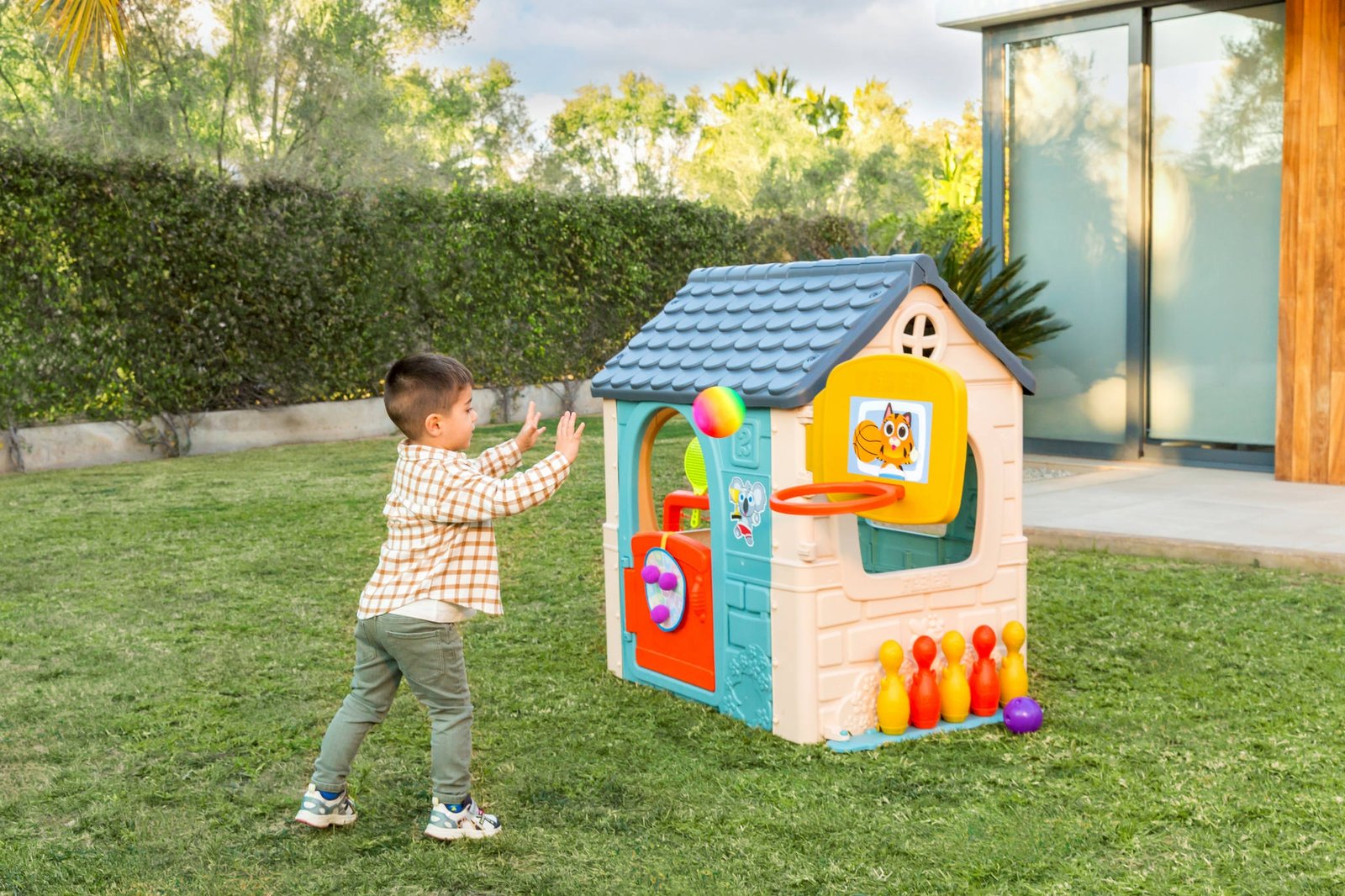Didelis plastikinis žaidimų namukas su čiuožykla ED44440