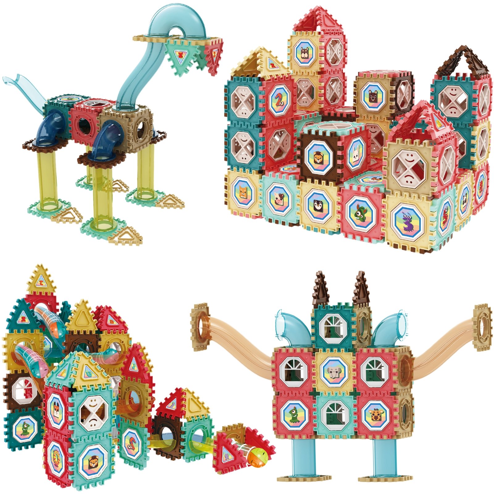 - – Iš viso 128 skirtingi konstrukciniai elementai ir kamuoliukų bėgimo trasos elementai