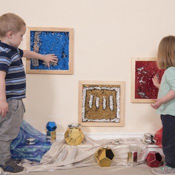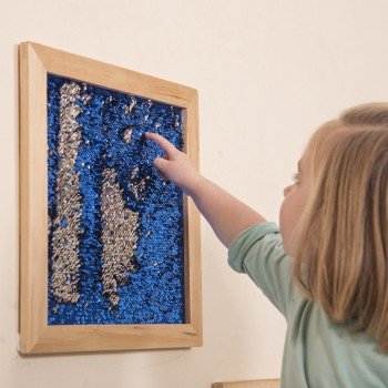 3 sensorinių panelių rinkinys, pripildytas blizgančiais blizgučiais, kurie keičia spalvą braukus pirštu ar ranka, garantuodamas žaismingą regos ir lytėjimo pojūčių stimuliavimą jauniausiems vartotojams. Produkto naudojimas suteikia vaikams sensorinę stimuliaciją, lavina jų kūrybiškumą ir leidžia atsipalaiduoti.