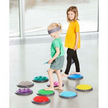 Rinkinį sudaro 10 diskų, kurių skersmuo yra 27 cm, ir 10 diskų, kurių skersmuo yra 11 cm, kiekvienas diskas pagamintas iš odai draugiškos gumos. Kiekvienas diskas yra skirtingos tekstūros, o vaikas, žengdamas ant disko lytėjimo pojūčiu, bando atspėti ir suderinti didelio disko, paliesto koja, ir mažo disko, laikomo rankoje, poras.