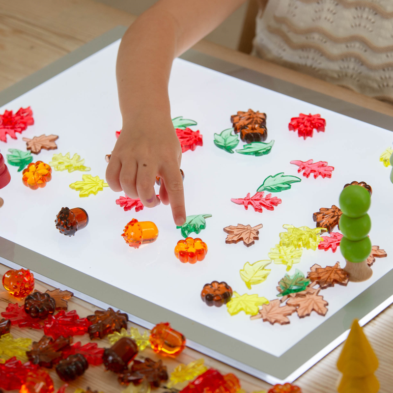 6 rūšių (gilės, moliūgo, storo klevo lapo, plono klevo lapo, 2 skiaučių lapo, 3 skiaučių lapo) 5 spalvų (raudonos, oranžinės, geltonos, žalios ir rudos) patogiame laikymo inde su dangteliu.