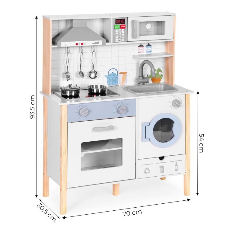 Virtuvėje yra orkaitė, kaitlentės, skalbimo mašina, kriauklė, mikrobangų krosnelė, gartraukis ir 5 virtuvės priedų rinkinys (puodas, keptuvė su dangčiu, samtis, mentelė, sietelis)